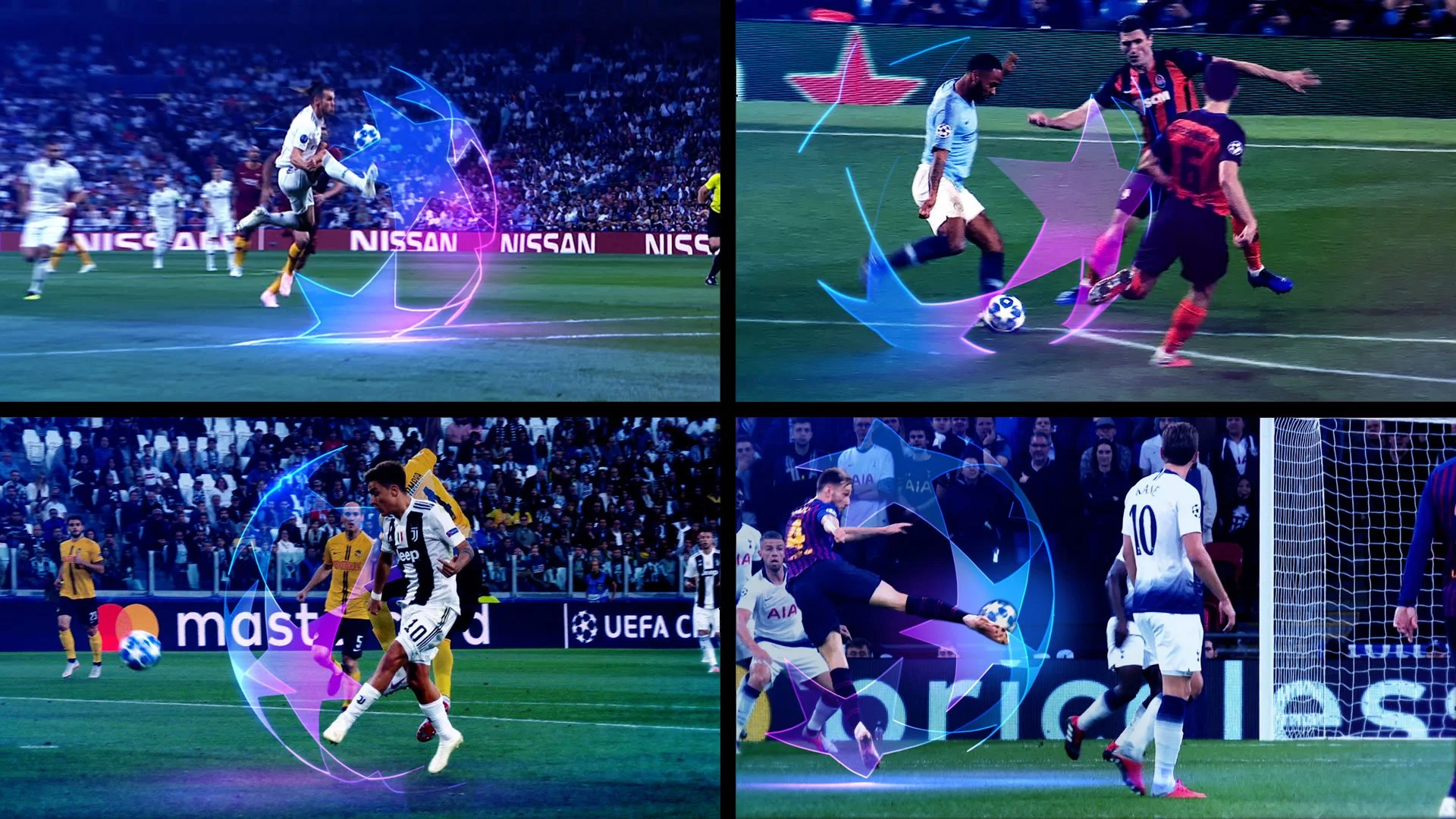 For the title sequence we 3D tracked four iconic shots from the season so far and composited the Champions League starball around the key player, following the movement of the shot and highlighting the key moment in the match.